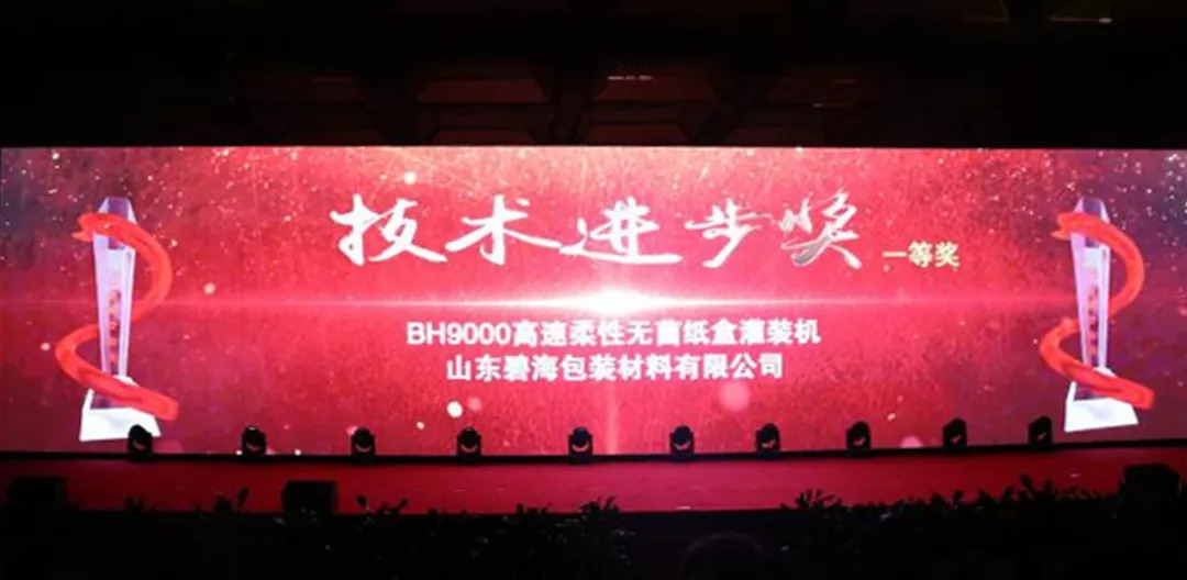8月25日晚,2018年度中國乳制品工業(yè)協(xié)會系列頒獎典禮在西安曲江國際會議中心隆重舉行。山東碧海包裝材料有限公司制造的BH9000高速柔性無菌紙盒灌裝機榮獲技術(shù)進步獎一等獎!